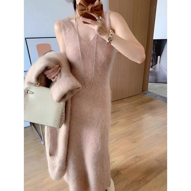 ワンピース カーディガン ツーピース シャギーニット ふわふわ 上品 お呼ばれ レディース 大人 カジュアル きれいめ 韓国ファッション