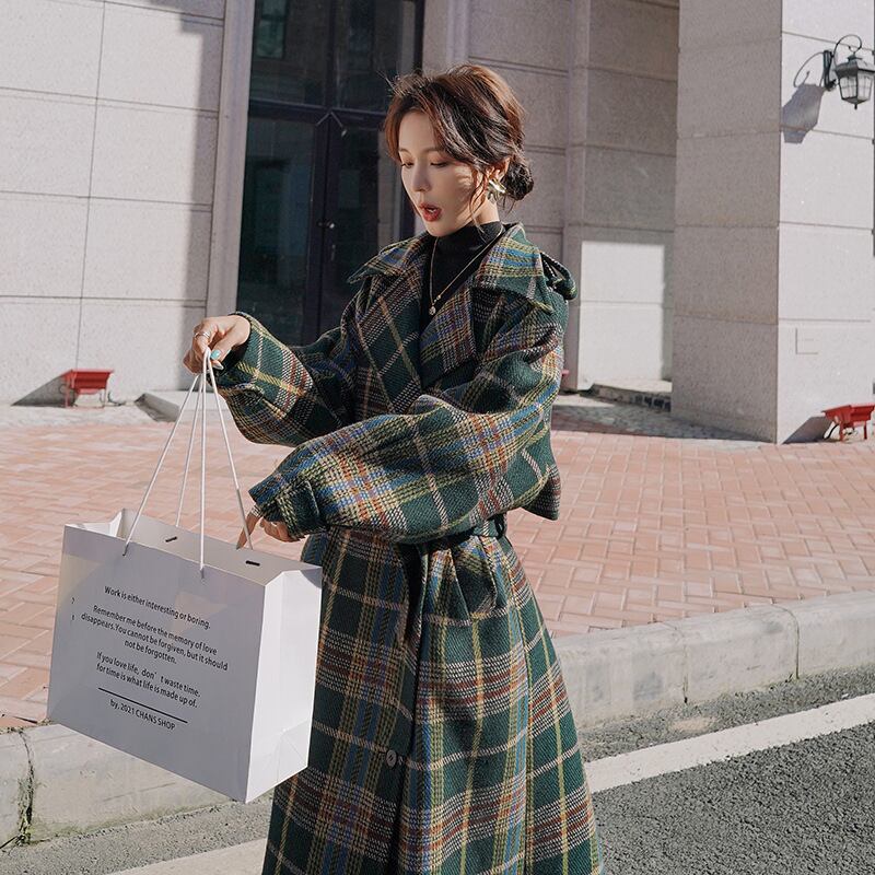 ロングコート ウールコート グリーンチェック 厚手 チェック 秋冬 SからXL レディース アウター トレンド 高見え 大人 カジュアル きれいめ 韓国ファッション