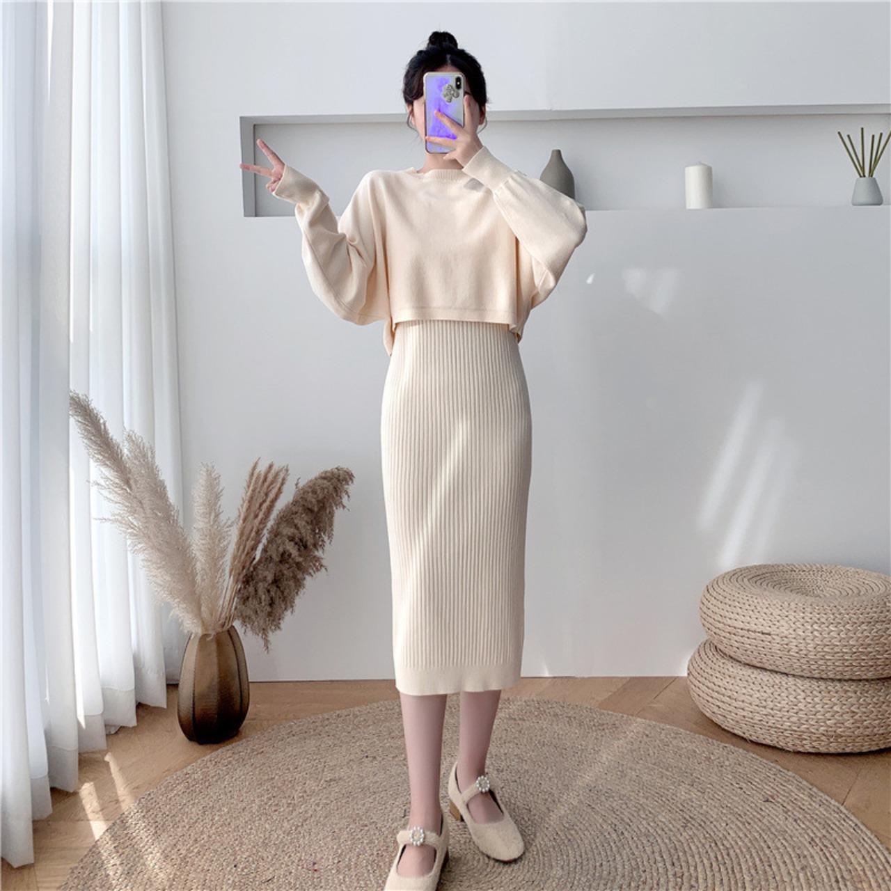 ニットワンピース アンサンブル ニットセット ツーピース レディース オールインワン 秋冬 大人 カジュアル きれいめ 韓国ファッション