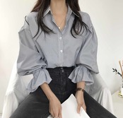 ストライプ柄 キャンディースリーブ 長袖シャツ ブラウス ストライプ柄 バルーン袖 ゆったり ドロップショルダー 長袖 春 トップス レディース 大人 カジュアル きれいめ 韓国ファッション
