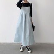 キャミソールワンピース ロングワンピース キャミワンピ 重ね着 サロペット ジャガード生地 レイヤード 体型カバー レディース ワンピース 大人ワンピース ロング丈 Aライン 大人 カジュアル きれいめ 韓国ファッション
